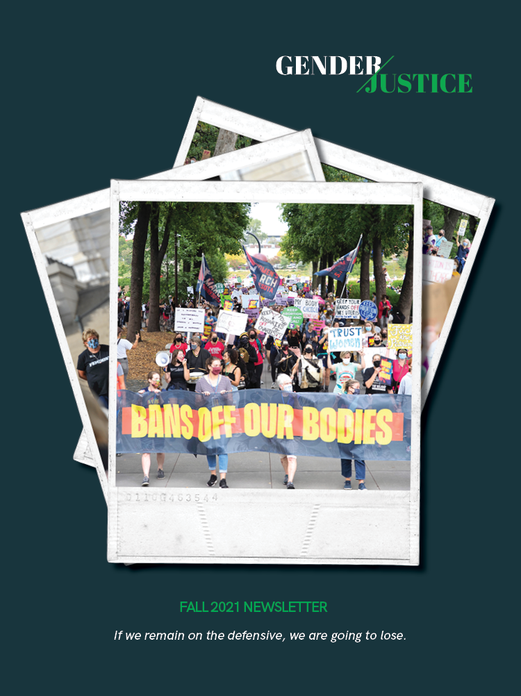 "As you’ll read in this newsletter, Gender Justice is fighting — and winning — in courts, in the legislature, in schools, and in our communities. We’re changing the laws to protect transgender students, going to court to fight state-level restrictions on abortion, launching public education campaigns to educate trans students about their rights, and building relationships with legislators so they can act on issues like the deceptive practices of the crisis pregnancy center industry."